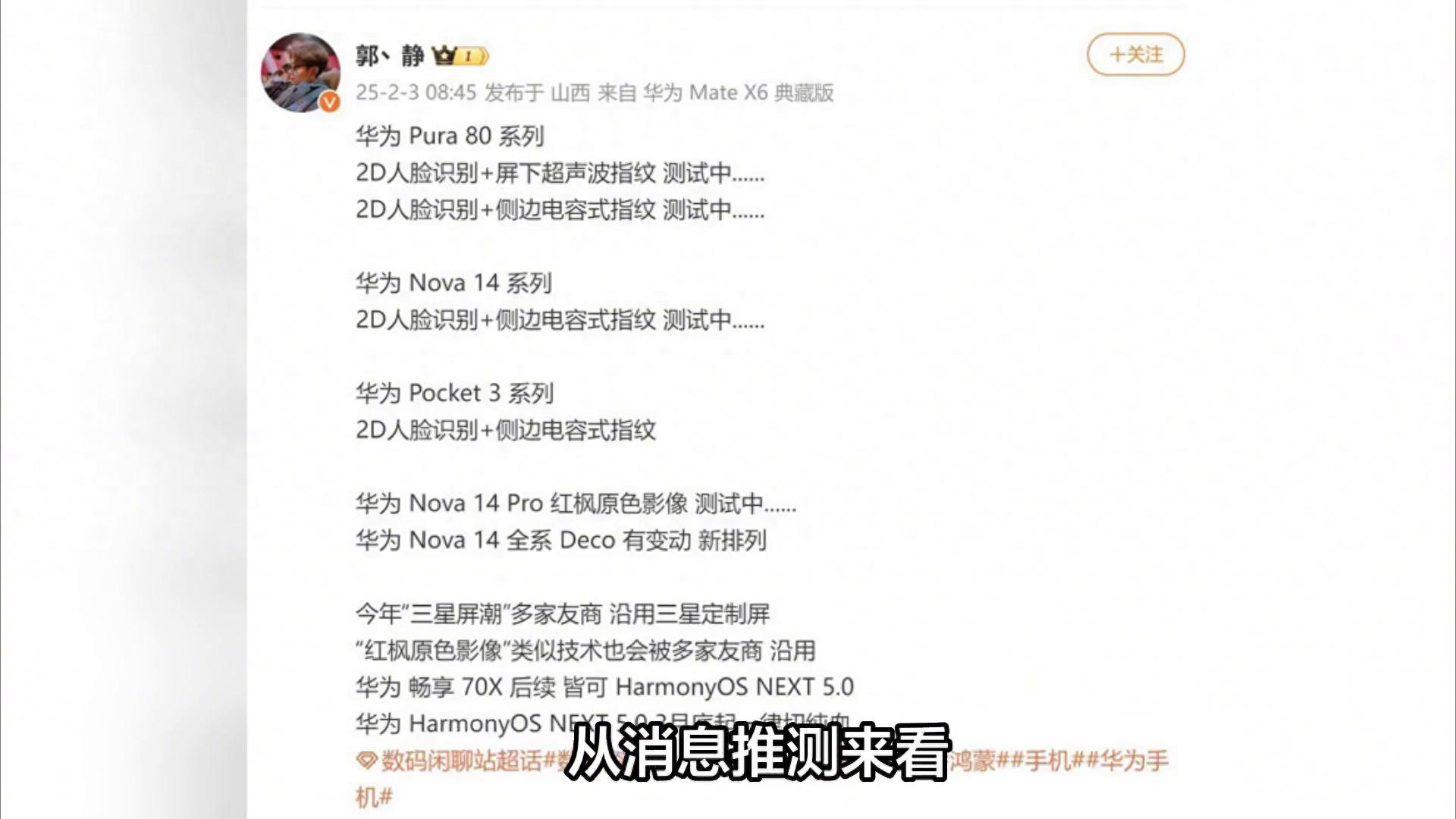 從消息推測來看,Pura80標準版很可能采用側邊電容式指紋技術,而Pro系列則可能使用屏下超聲波指紋技術。此外,nova14系列和Pocket3系列也在測試2D人臉識別+側邊電容式指紋方案,這表明在Mate70系列之后,多款產品將會沿用側邊指紋技術。