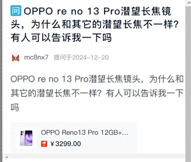 最近我們在后臺收到了用戶問,OPPO Reno13 Pro的潛望長焦鏡頭,為啥和其它的不一樣?今天我們給大家統一解答一下。