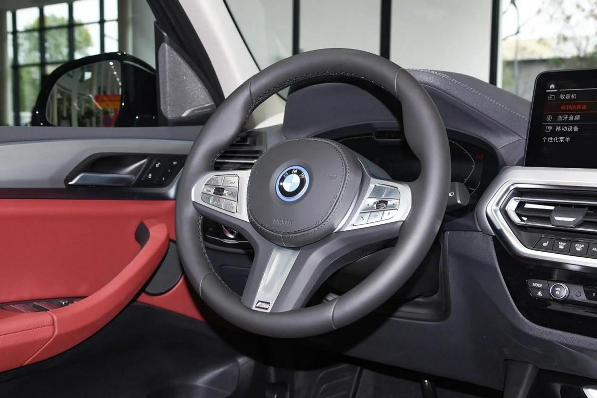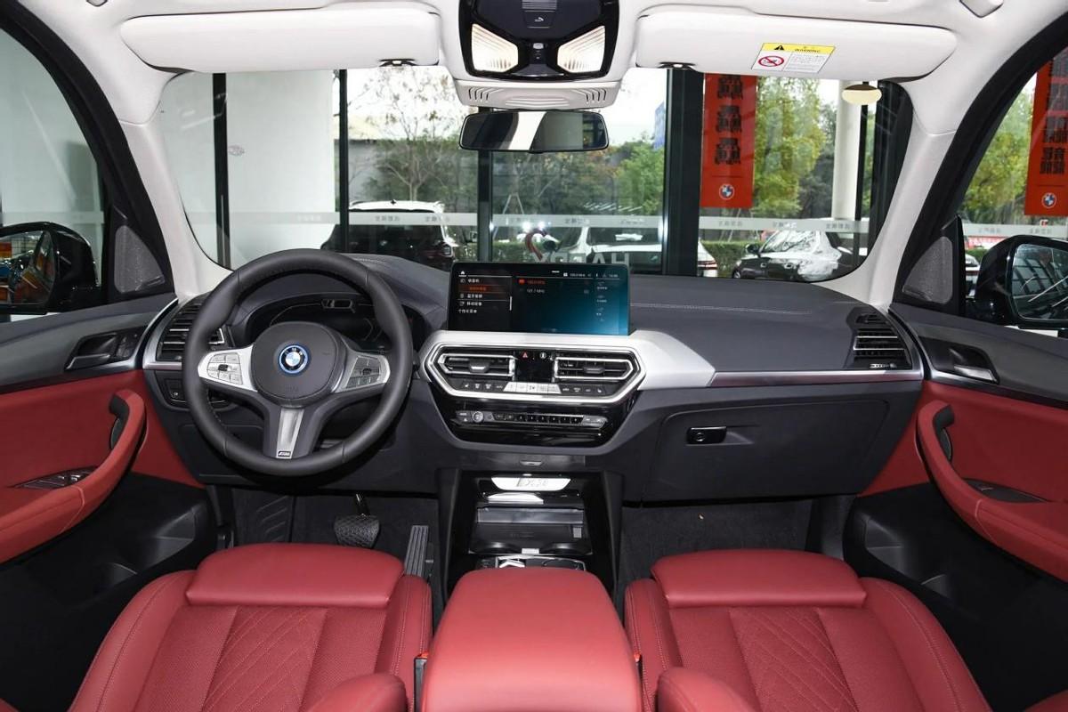 寶馬iX3的內飾布局會傳統一些,且其整體布局與燃油版的X3也很相似。具體來看,寶馬iX3采用了懸浮式中控屏、內嵌式液晶儀表盤的設計,且其中控臺整體向駕駛者一側傾斜,營造出了科技座艙的效果。同時,寶馬iX3內部采用了大量皮質材料、銀色飾板,檔次感還是蠻到位。值得一提的是,寶馬iX3采用了撥桿樣式的電子擋把設計,視覺效果比較精致,三幅式的方向盤,不僅運動感較強,握感也蠻扎實。另外,寶馬iX3還配備了哈曼卡頓音響,聽覺感受也蠻出色。