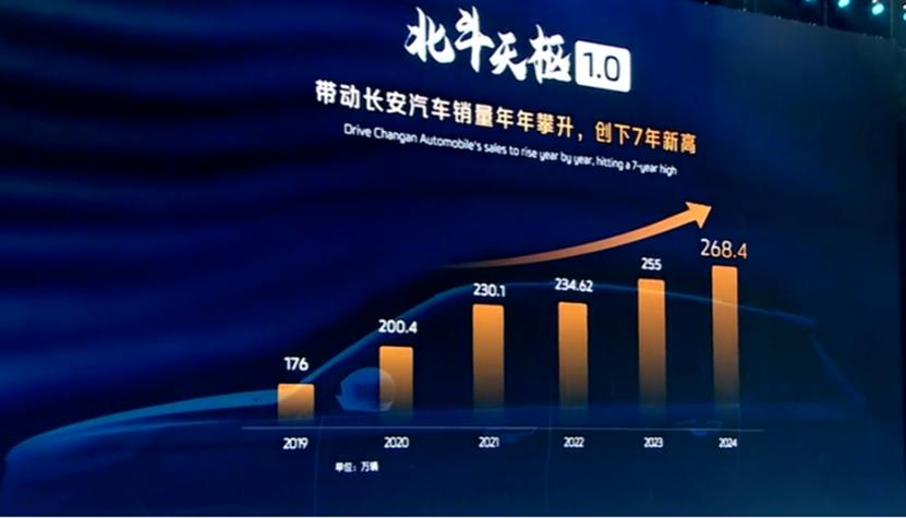 數據,成為了最好的證明,在北斗天樞1.0的賦能下,長安汽車銷量年年攀升,創下7年新高。