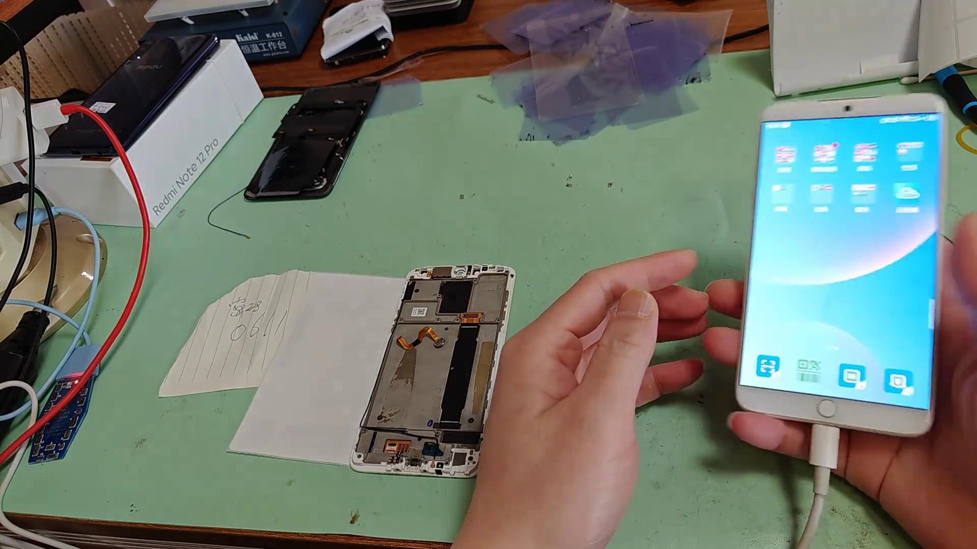 之前有很多同行自己換指紋也是不小心把這個通到排線上面,這個是液晶的排線,一頂它就壞掉了。這個是剛剛順豐發(fā)過來客戶急用,現(xiàn)在收到馬上已經(jīng)換好了,來測一下手機(jī)的功能。