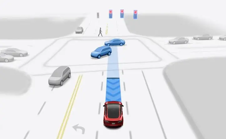 特斯拉現在的可視化功能,是在中央屏幕上,顯示車輛及其周圍環境,并在自動駕駛或全自動駕駛模式下顯示行駛路線。