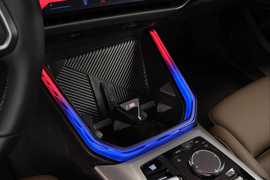 內飾方面,新車與普通版車型保持一致,寶馬X3 M50 xDrive提供3款不同的內飾(座椅)材質,以及不同顏色。標配可選帶縫線的Veganza皮革(黑色,深咖啡色,卡爾姆米色),付費選裝(2.4萬元)個性化定制Merino真皮(可選琥珀色拼接阿特拉斯灰,黑色拼接阿特拉斯灰)。提供2款內飾飾條:高級拉絲鋁制內飾飾條(標配),帶條紋印花的個性化定制木蘭細紋高級木飾(1000元)。