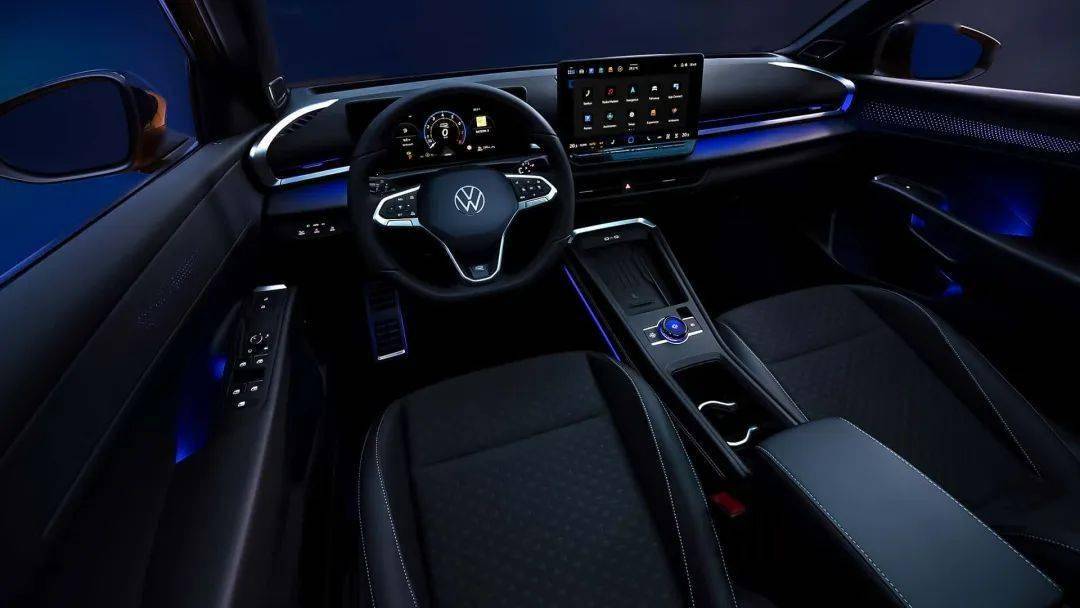 內飾方面,全新一代T-ROC內飾布局與全新Tiguan和新款高爾夫(Mk8.5)車型相似,配備10英寸全液晶儀表盤以及三輻式多功能方向盤,方向盤上的按鍵為物理按鍵。新車中控臺根據不同車型版本,將會配備懸浮式設計的10.4英寸或12.9英寸多媒體觸控屏,方向盤左右兩側的觸控按鈕被取消,回歸實體按鍵,空調仍通過觸摸滑塊控制。副儀表臺配備手機無線充電裝置,中間為駕駛模式切換旋鈕。