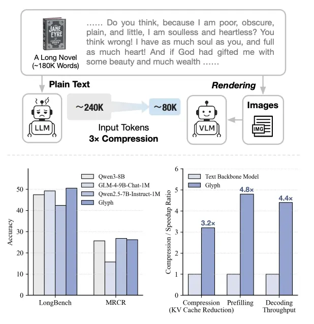 但如果使用Glyph,把整本書渲染成緊湊的圖像,大約只需要80K視覺Token。