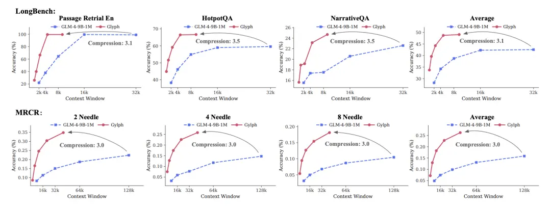 靠著這套組合拳,Glyph在高壓縮的視覺上下文任務(wù)里依然能游刃有余。