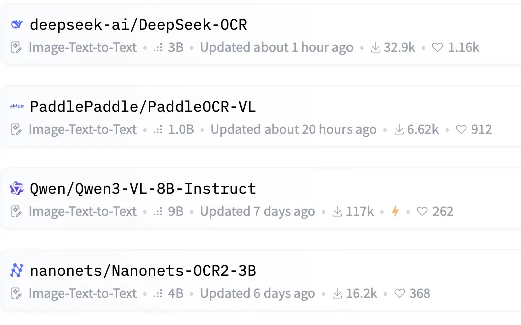 截至10月22日,抱抱臉上最受歡迎的前四個模型,全部都支持OCR。