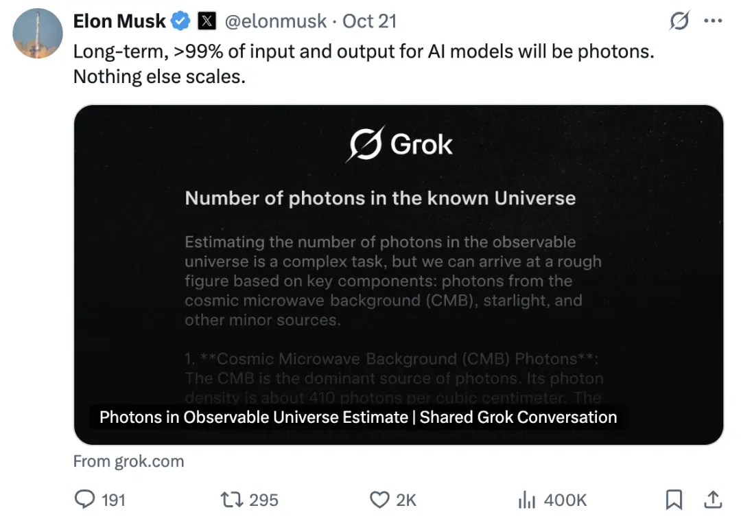 從長遠(yuǎn)來看,人工智能模型的輸入和輸出中 99% 以上都將是光子。