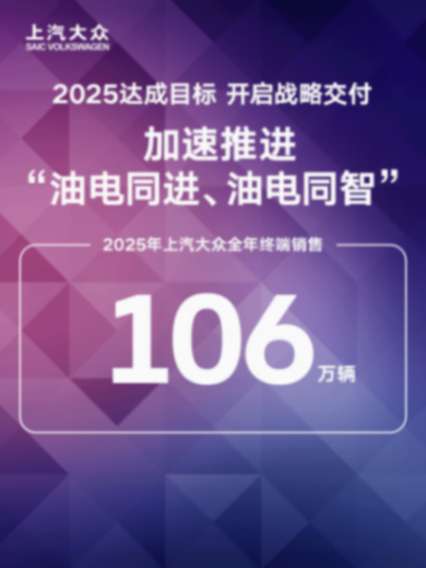 寫在最后:上汽大眾2025年106萬的銷量成績,不僅是一個數字的突破,更是企業轉型發展的里程碑。在理性回歸的市場生態中,上汽大眾以價值為錨、以產品為核、以體系為基,走出了一條符合自身發展特質的轉型之路。未來,隨著全新產品矩陣的落地與體系能力的持續優化,這家深耕中國市場四十余年的頭部合資車企,將會提供一個全新的樣本。